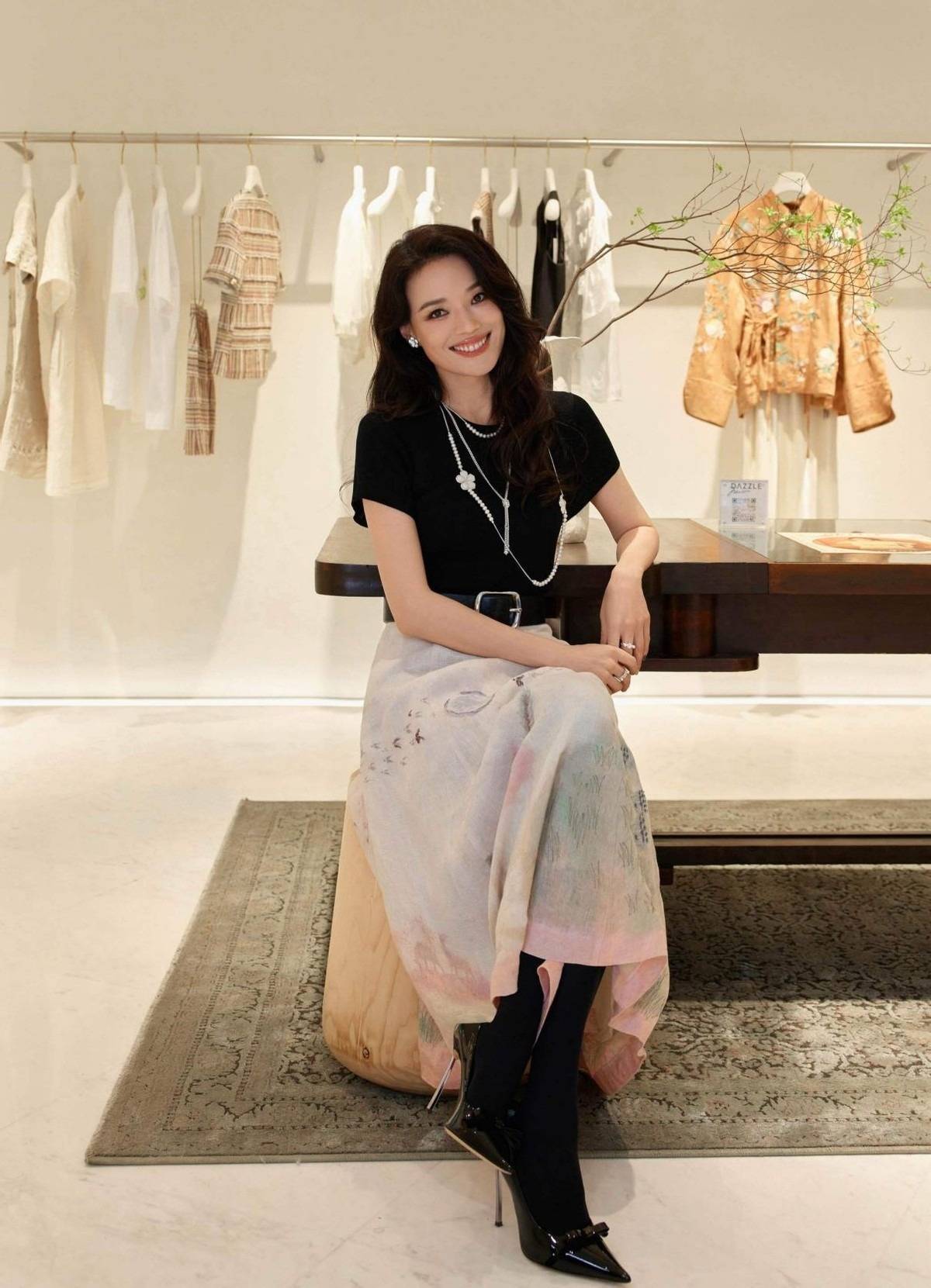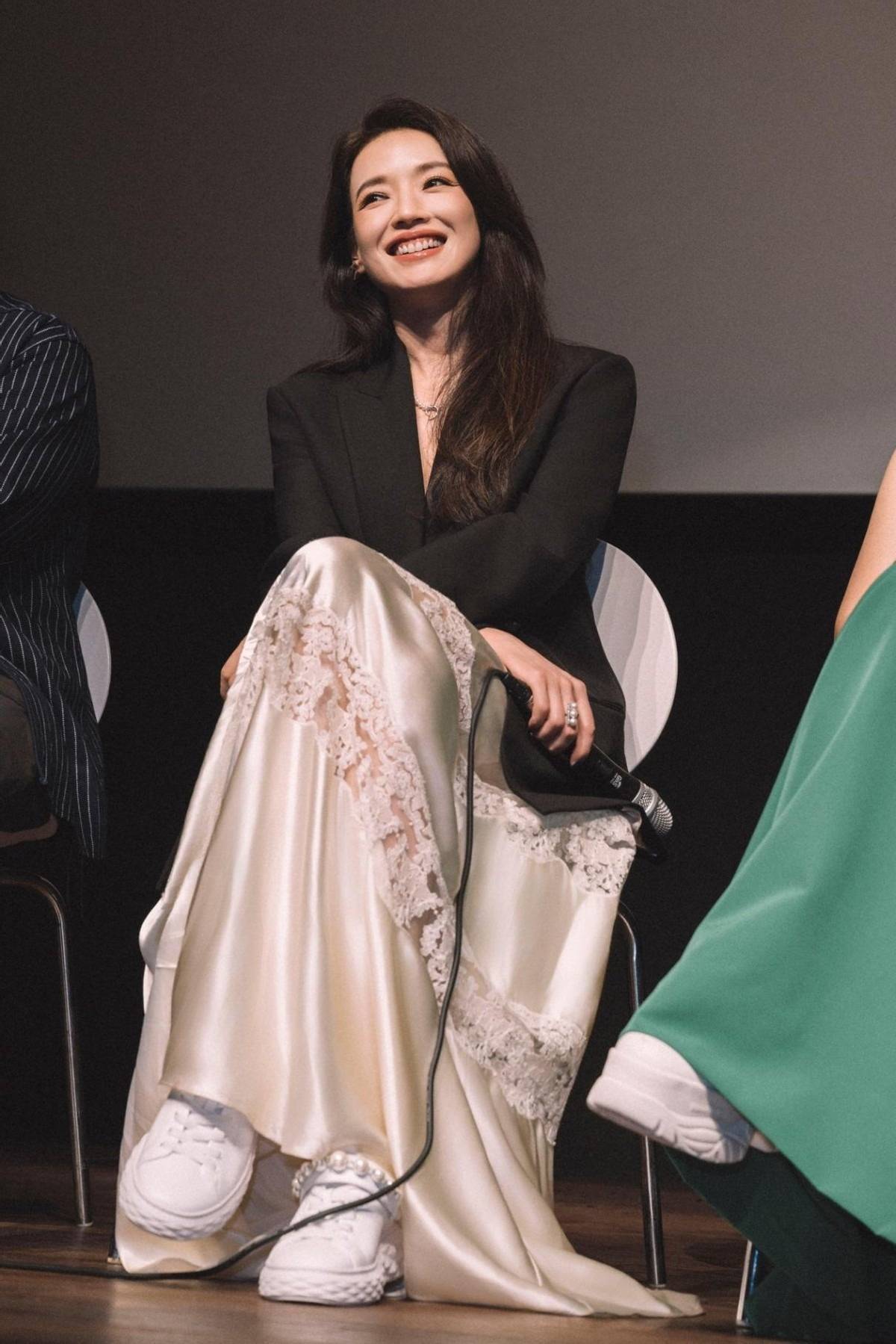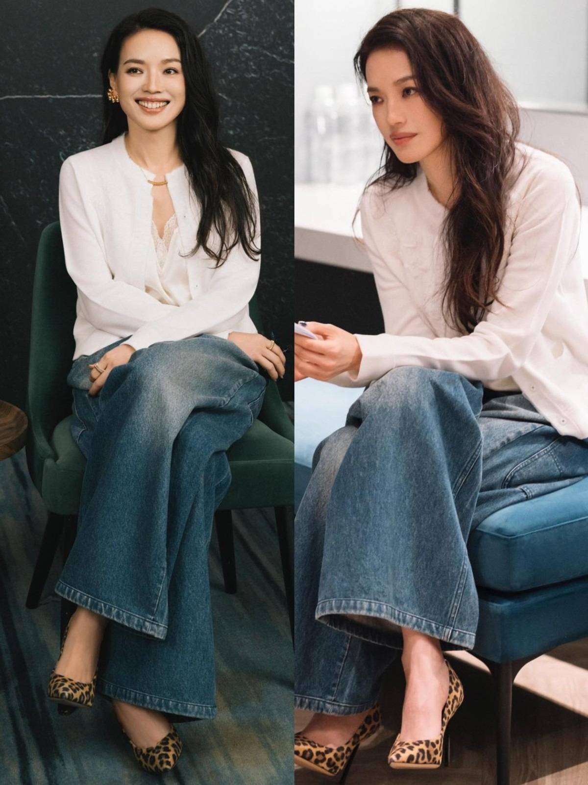 舒淇简直就是妥妥的“百变女王”,可甜美、可性感还可以变身高智大女人,雪纺衬衫配西装直筒裤,落落大方。