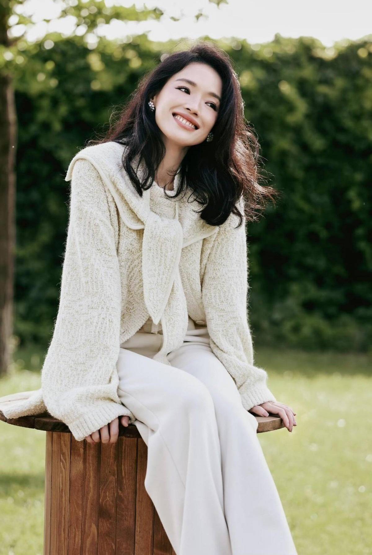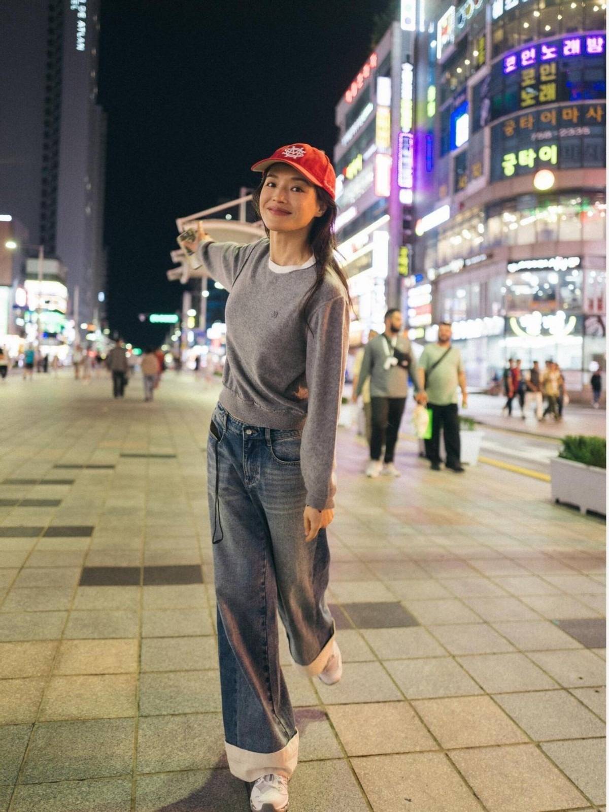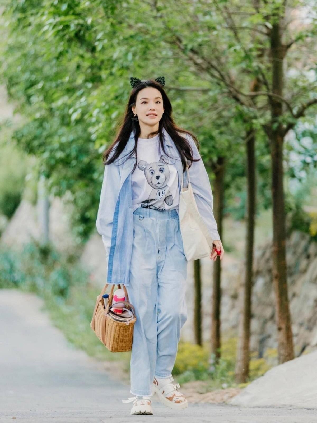 即便是素颜现身,身穿基础款针织衫和牛仔直筒裤,也完全挡不住舒淇的好气质,带点小红帽,少女感十足。