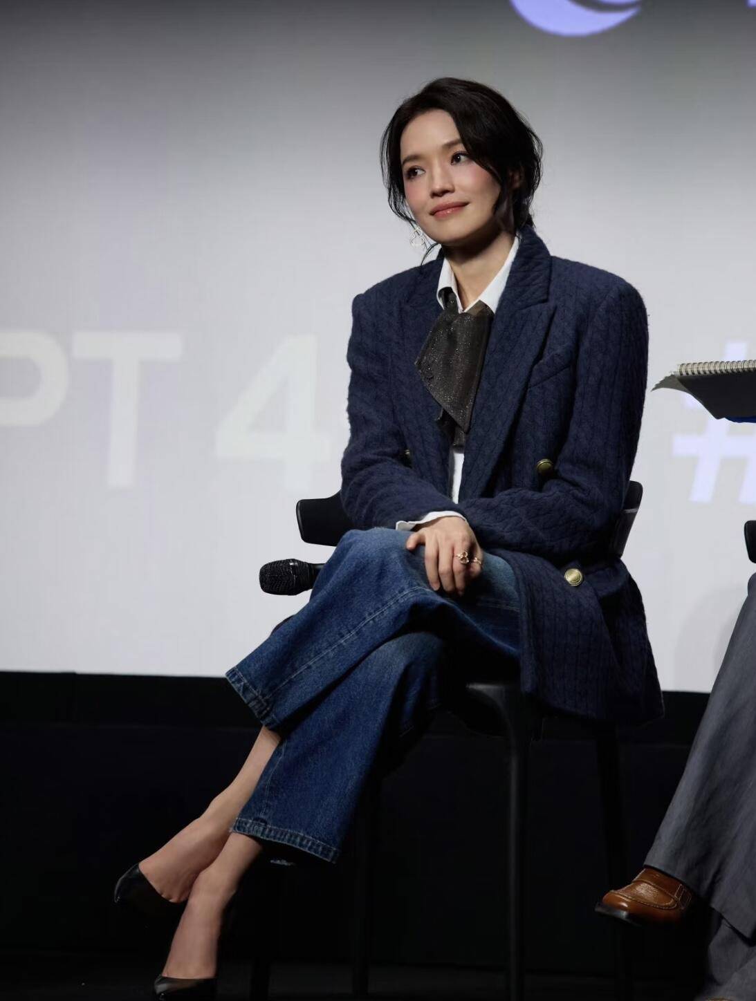 出席重要场合的时候,舒淇会打扮的更得体一些,挺阔有型的千鸟格西装外套,搭配牛仔裤,瞬间摆脱了严肃感。